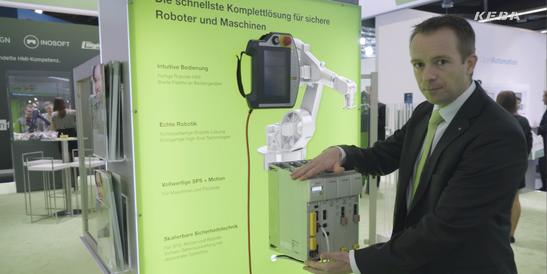 Markus Hanetseder, Produktmanager für Robotik stellt KeMotion, die einzigartige Kombination eines Motion-Controllers, einer Sicherheitssteuerung und einer High-End Robotersteuerung vor. Herausragende Technologiefunktionen für höchste Präzision und schnellste Bewegungen runden das hochoptimierte Gesamtpaket ab.