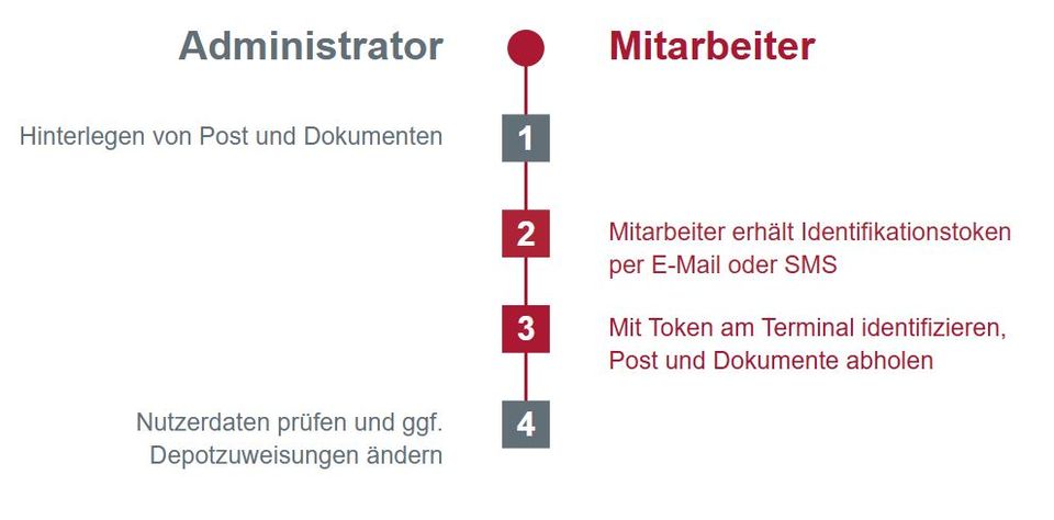 If you also want external contractors to have access to the internal mail distribution system, they can be set up beforehand. They then collect their mail using a QR code or PIN, for example. This means that no documents are lost in the course of internal mail distribution.