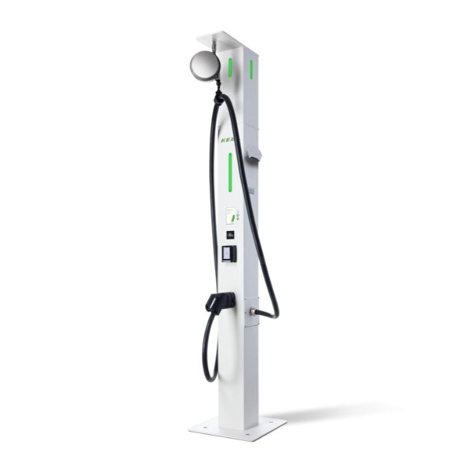 Whether at a logistics depot or a bus terminal—where many electric buses and trucks are charging, efficient space utilization is essential. That’s exactly why KEBA developed the KeContact DCL10 Pillar. Its name says it all: with its slim, tall design, the dispenser is literally a charging pillar.