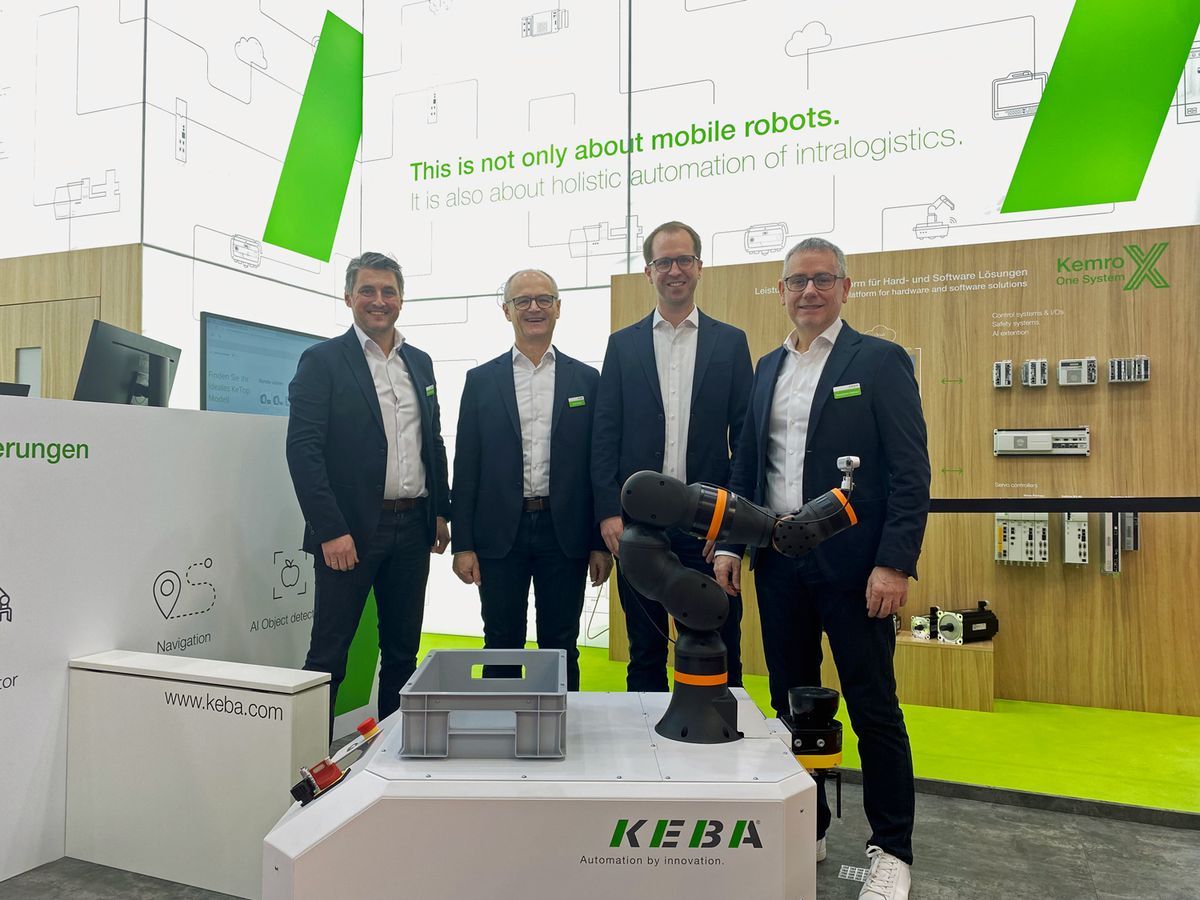At LogiMAT 2024, KEBA is exhibiting a mobile robot in combination with a mounted manipulator from igus. We are demonstrating an automated picking process with AI-supported object recognition. The entire demo is based on our Kemro X development environment.
