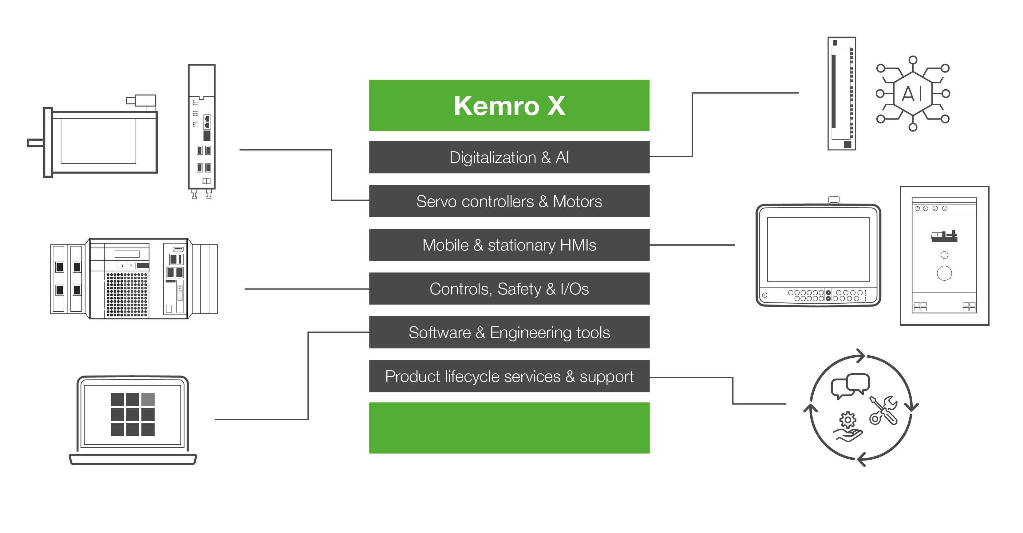 Kemro X는 첨단 산업 자동화 솔루션을 위해 설계된 사용자 친화적이며 개방적이고 모듈화된 플랫폼입니다. 당사의 폭넓은 제품 및 서비스 포트폴리오를 기반으로, 다양한 애플리케이션과 기술 패키지, 소프트웨어 및 하드웨어 구성 요소를 유기적으로 결합한 종합적이고 유연한 시스템입니다.
